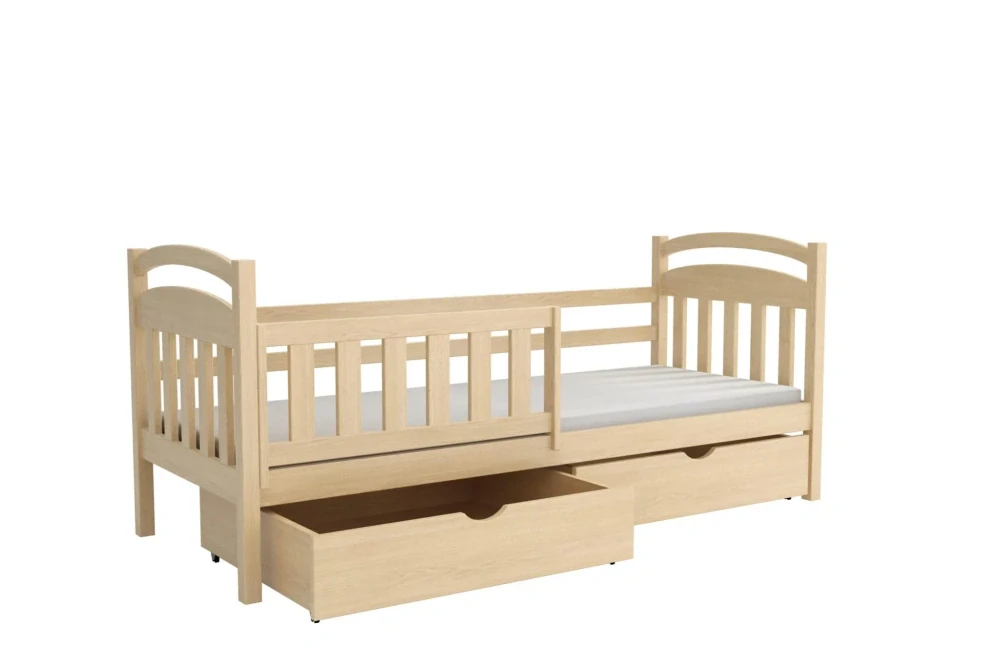 Postel je dodávaná vč. laťového roštu a zábrany, úložné prostory a matraci lze dokoupit ve variantách výrobku.