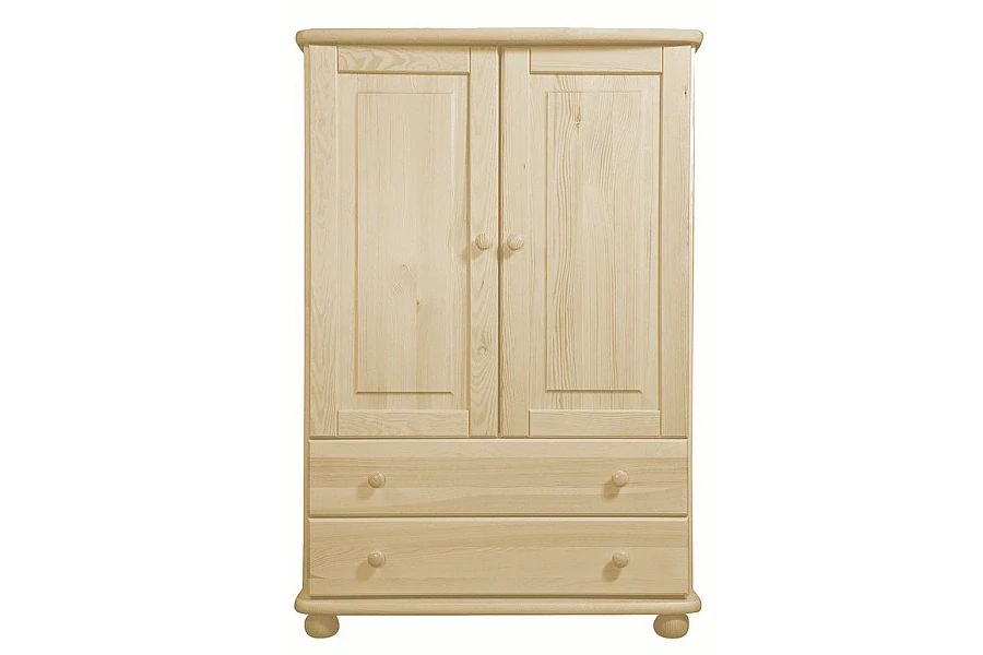 Dřevěný nábytek vyrobený z kvalitního borovicového masivu s povrchovou úpravou, kterou zajišťuje poctivá vrstva bezbarvého laku.