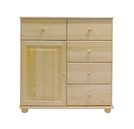 Tato praktická komoda je vybavena kvalitními kovovými panty a pojezdy. Je vyrobena ze 100% přírodního dřeva, masivu borovice.