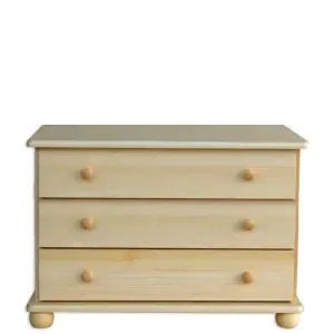 Tato praktická komoda je vybavena kvalitními kovovými panty a pojezdy. Je vyrobena ze 100% přírodního dřeva, masivu borovice.