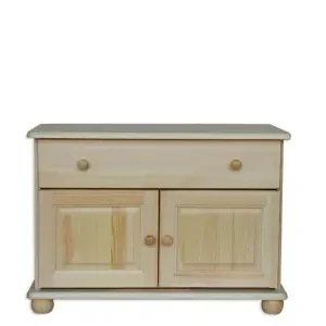 Tato praktická komoda je vybavena kvalitními kovovými panty a pojezdy. Je vyrobena ze 100% přírodního dřeva, masivu borovice.