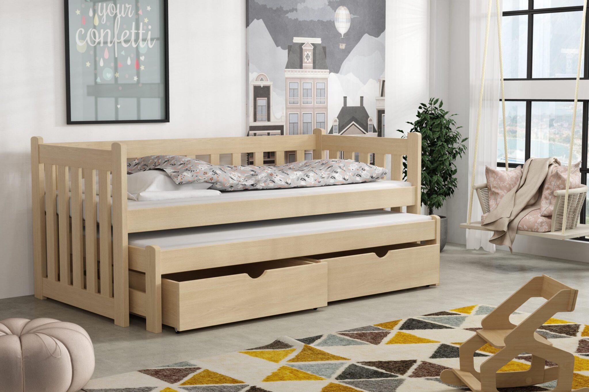 Dřevěná postel s výsuvnou přistýlkou KRZY 02 90x200 cm borovice masiv s úložným prostorem