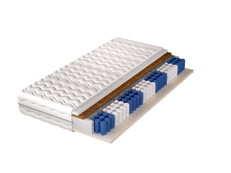 Kokosová podložka : Kokosová podložka je přírodní surovina získaná ze skořápek kokosových ořechů. Má výborné tepelné vlastnosti a zajišťuje správnou cirkulaci vzduchu uvnitř matrace. Kokosové vlákno je díky své přirozené struktuře lehké, vzdušné a má antialergické vlastnosti. Vyznačuje se vysokou elasticitou, absorbuje pot a vlhkost v okolí. Díky použití kokosových plátů je matrace mnohem tužší a odolnější vůči deformaci.