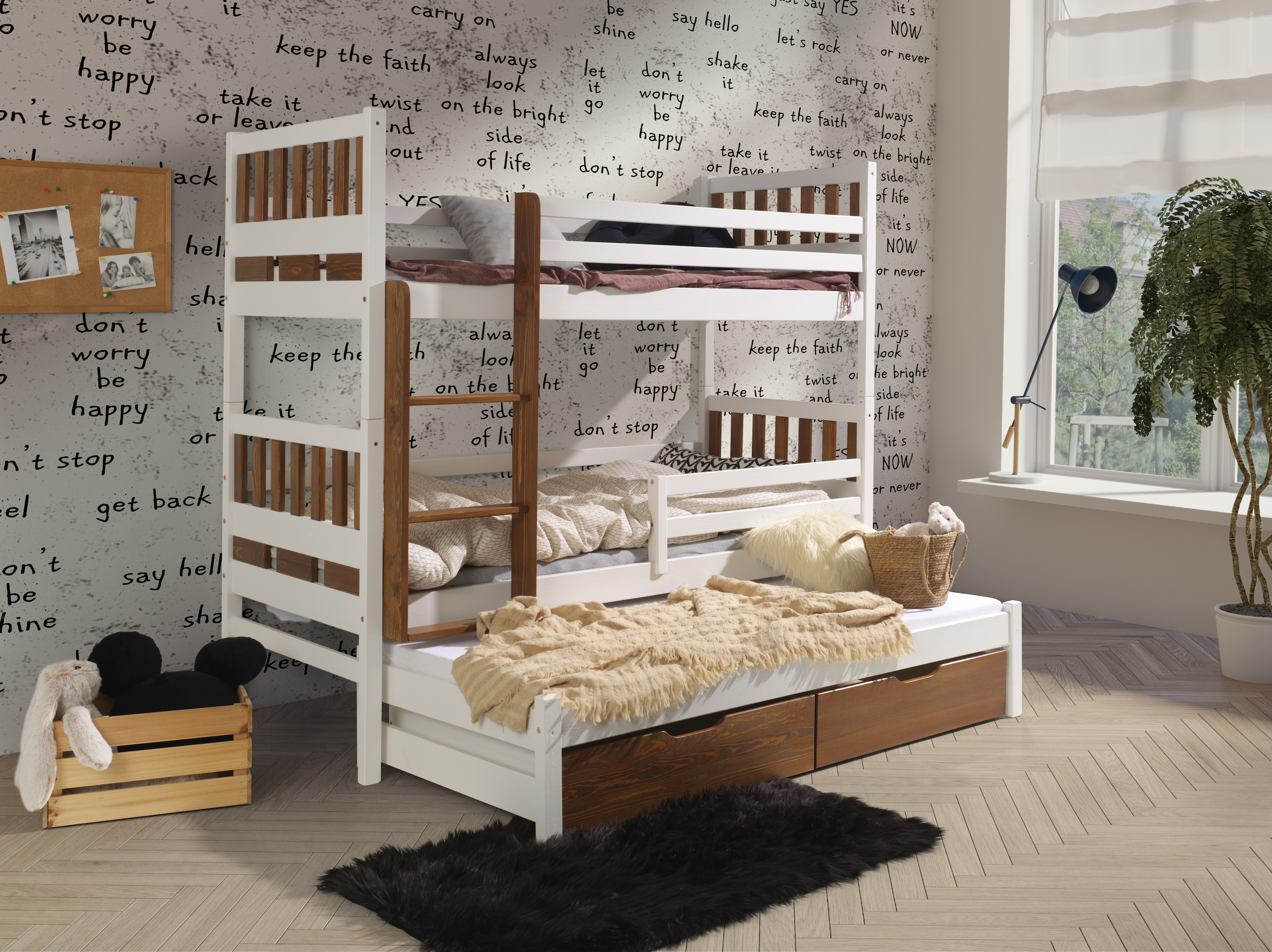 Patrová postel Karim 3 s úložným prostorem borovice masiv
